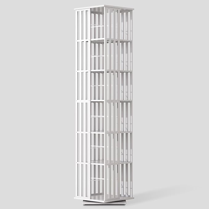 - 360° Rotating Bookshelf with Stable Base: Enjoy effortless organization with this rotating bookshelf tower—smooth 360° spin lets you find books, movies, or décor in seconds without bending or rearranging. The sturdy bamboo base and reinforced structure keep your spinning bookcase stable and wobble-free, even when fully loaded. Ideal for living rooms, bedrooms, home offices, or small apartments.