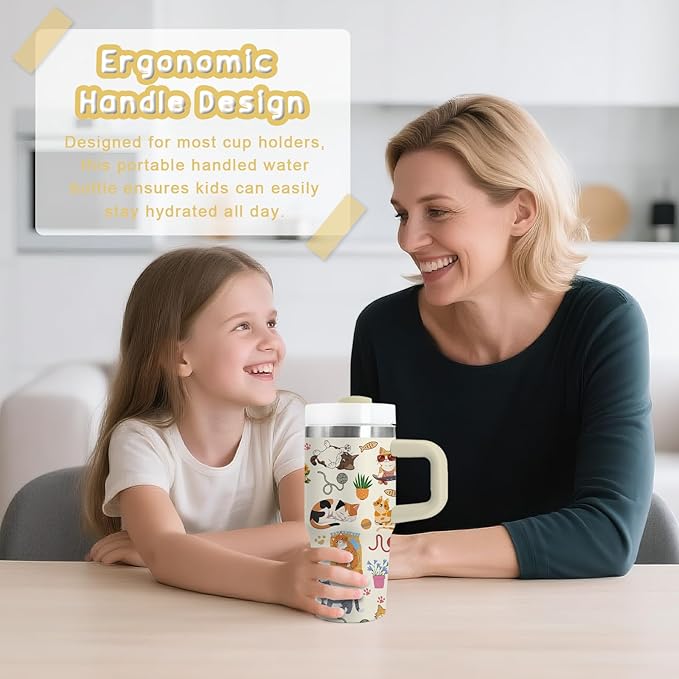 - 🐱 Charming Cat Design for Kids - This 14oz tumbler showcases sweet cat illustrations with their signature cute expressions and fluffy appearances, perfect for children who love adorable felines. The fun patterns of cats in various playful poses make hydration enjoyable and exciting