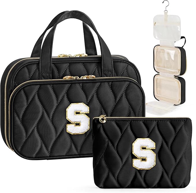 YOOLIFE Travel Toiletry Bag for Women - Hanging Toiletry Bag Makeup Bag, Portable Toiletries Travel Bag and Cosmetic Bag Essentials Black - S