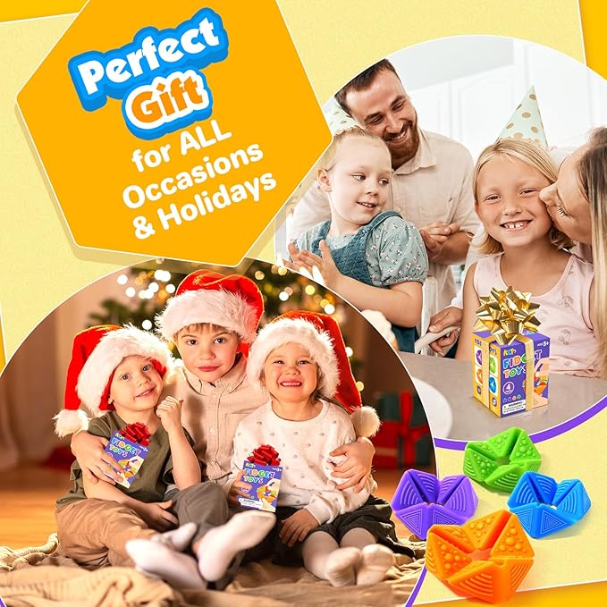 - Great Gift Ideal for Kids: Bright, vibrant colors, fun flip-and-play action, and a unique design instantly capture children's attention (patented design). Your child will absolutely love this fidget toy and enjoy endless entertainment. Toddlers and Kids can not only enjoy the fun of flipping, but also enhance fine motor skills and finger dexterity. Perfect as a birthday gift, Christmas stocking stuffer, goodie bag stuffers, classroom prizes and more