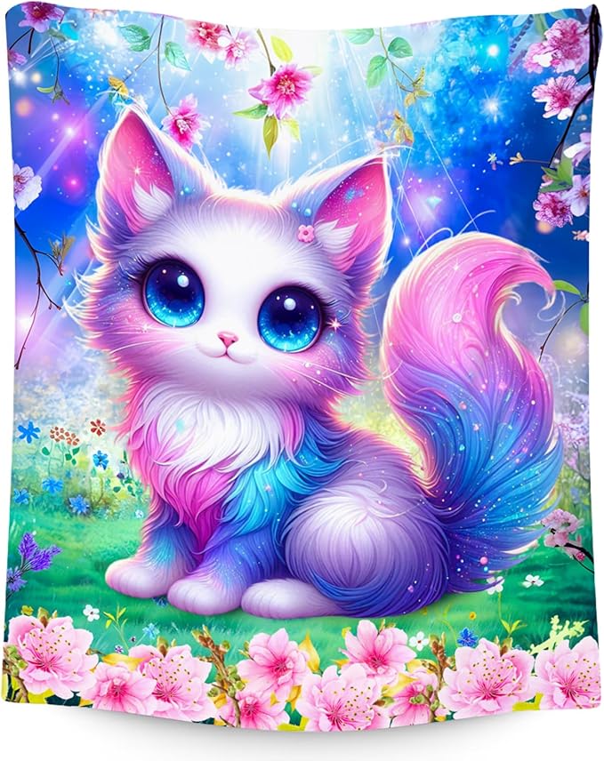 Blanket Gifts for Girls, Cat Blankets for Cat Lovers, Girls Throw Gifts, Cute Flannel Throw for Kid, 40"x50"