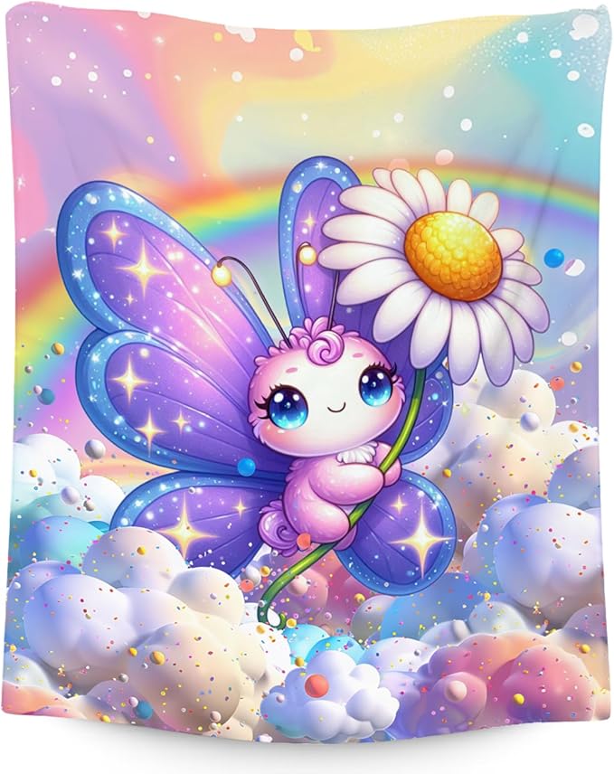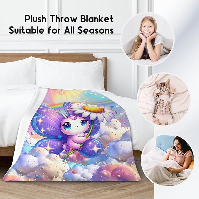 Girls Blankets - Butterfly Blanket Gifts - 60x80 Inches Cute Cozy Soft Flannel Throw for Couch, Office Bed