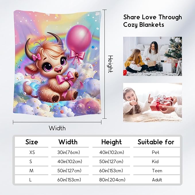 Girls Blankets - Highland Cow Blanket Gifts - 40x50 Inches Cozy Soft Flannel Throw for Couch, Office Bed