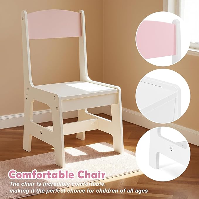 - 【Ample Storage Solutions】The matching stool comes with a hidden storage box—perfect for stashing toys, books, or little trinkets. The table also has open shelves and a closed cabinet to keep makeup toys, stationery, or art supplies organized