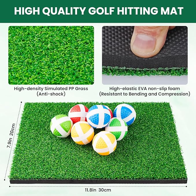 - Quick Setup, Endless Play -- Set up golf chipping game in seconds with our easy-assembly golf game. This golf training mat is designed for hassle-free use, whether you're practicing your swing on a golf swing mat or enjoying a golf party game. The golf balls ensure a secure grip during every game, making it ideal for indoor golf play and outdoor challenges alike. Embark on your golf at home journey effortlessly