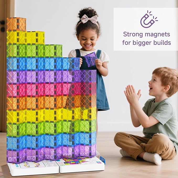 - 【Unrivaled Safety & Power: Sealed with Sonic Welding】Your child's safety is non-negotiable. Our advanced ultrasonic welding technology permanently fuses each tile, creating an unbreakable seal that guarantees magnets will never fall out. Paired with powerful, rare-earth magnets, this ensures rock-solid connections for complex, stable structures that stand tall, guaranteeing years of vigorous and worry-free play. Complies with ASTM F963 & CPSIA safety standards