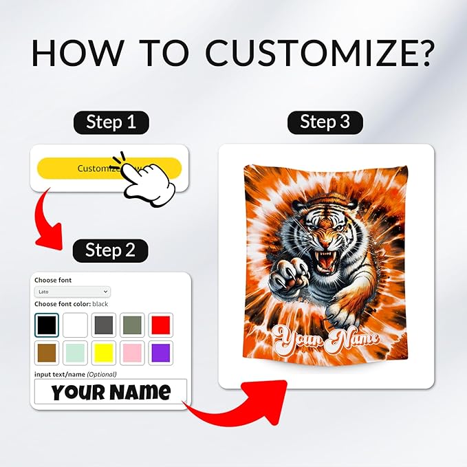UNIKITTY Personalized Kids Blanket, Tiger Blanket Gifts for Girls Boys, Custom Gifts with Name, Fleece Throws with Tie Dye Print for Room Decor (4 Sizes)