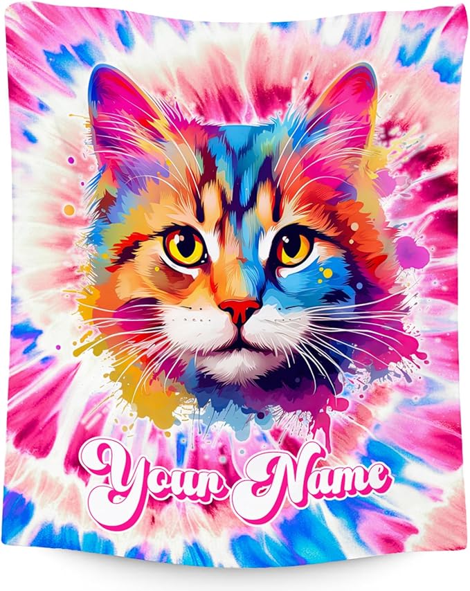 UNIKITTY Girls Blanket, Cat Blanket Gifts for Girls Toddlers, Personalized Rainbow Throw, Custom Flannel Kids Throws with Cat On It (4 Sizes)