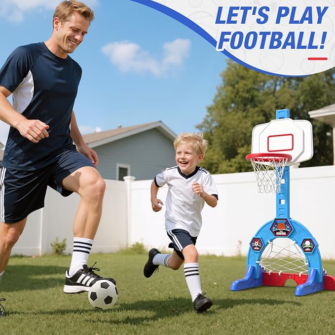 Toddler Basketball Hoop, 3-in-1 Sports Activity Center with Soccer Goal, Golf Game, 5 Height Adjustable Kids Basketball Hoop, Indoor Outdoor Playset Toys Gifts for Boys Girls 3-5, Blue