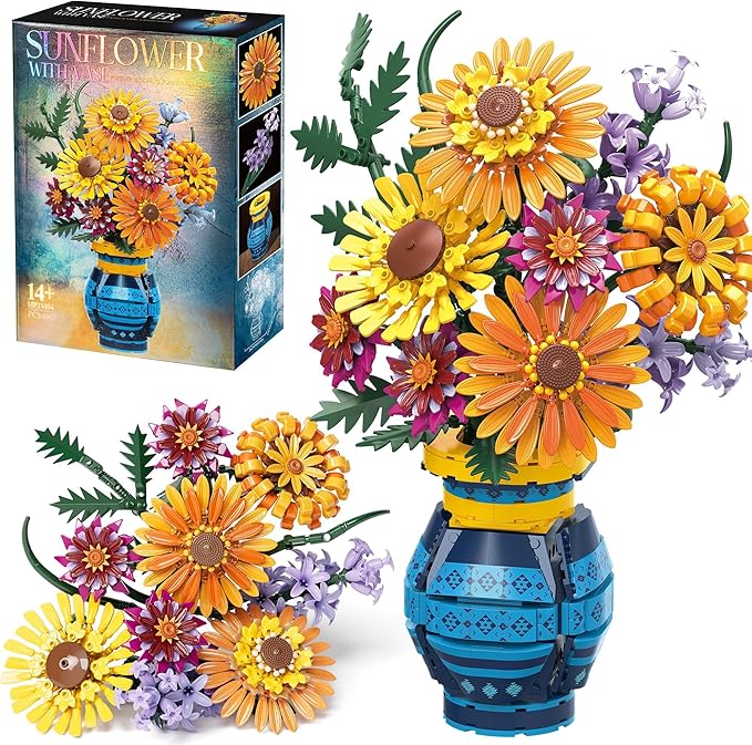 - Timeless Christmas Home Decor: Brighten anywhere with a forever-blooming sunflower bouquet building set that never wilts! Designed as the perfect Christmas gift for teen, this elegant artificial plants flower set adds warmth and charm to any office, bedroom or living space. Featuring vibrant colors and a realistic design, this flower bouquet creates an inviting atmosphere all year long. Ideal as a holiday gift, this building block girls gift set embodies lasting beauty and joyful creativity