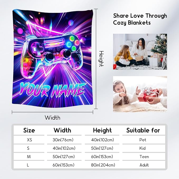 - Personalized Blanket for Kids: Enjoy the charm of this soft kids throw, now with personalized touch! Whether it's for a teen boy, a dedicated gamer, or an adult, this custom name blanket adds a playful touch to game night, or cozy corner