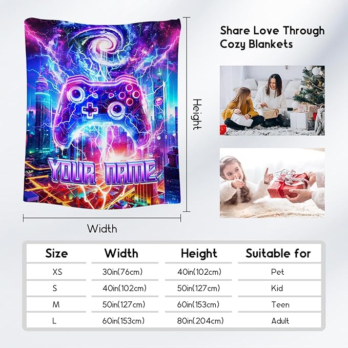 - Personalized Blanket for Kids: Enjoy the charm of this soft kids throw, now with personalized touch! Whether it's for a teen boy, a dedicated gamer, or an adult, this custom name blanket adds a playful touch to game night, or cozy corner