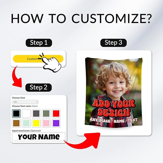 - Add Your Design: Upload your own design, whether it's a cherished photo, a special message, and have fun creating a custom blanket. Whether you choose it for a child, a teen, or an adult, this charming blanket will capture the hearts of people of all ages.