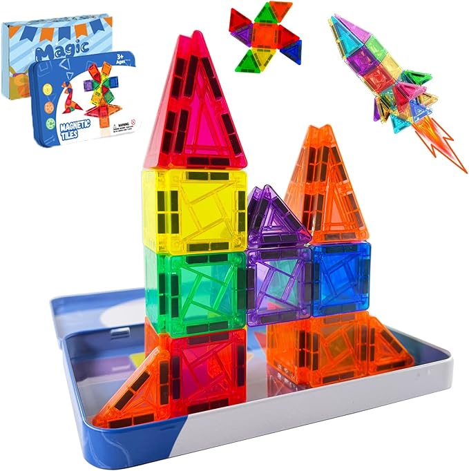 - EASY TO BUILD AND COMPATIBLE DESIGN: The magnetic tiles travel toy for kids features strong magnets for stable builds that won’t easily collapse. Kids can snap, connect, and separate tiles with ease. Also the magnetic blocks set is compatible with other magnetic toys, great for multi-player creativity and skill development.
