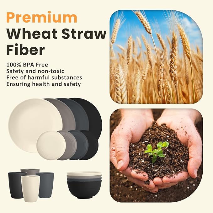 - SAFE & RELIABLE: In the embrace of nature, we carefully crafted a multicolor dinnerware sets for you. It is carefully woven from natural wheat straw fiber and BPA-free PP material. It is not only reusable, but also, by virtue of its material, free of harmful chemicals, protecting the health of you and your family.