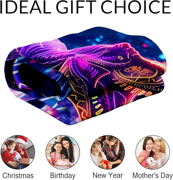 Custom Dinosaur Blankets Gifts for Boys - Teens Adult Fuzzy Dino Throw Blanket for Room, Work