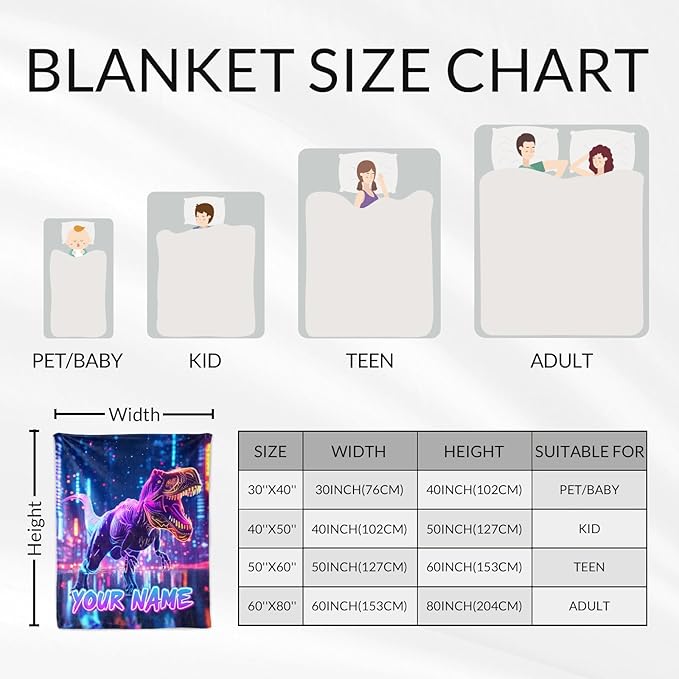 - Multi-purpose Blanket: Whether you're snuggling up in bed, watching TV on the couch, or enjoying some quiet time in the living room or office, the personalized dinosaur blanket is an ideal companion. Its lightweight yet plush design allows for easy portability, making it an excellent travel companion as well