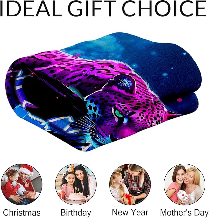 Custom Leopard Blanket for Boys - Adult Fluffy Cheetah Blankets Gifts - Cozy Teens Throws for Sofa, Bed