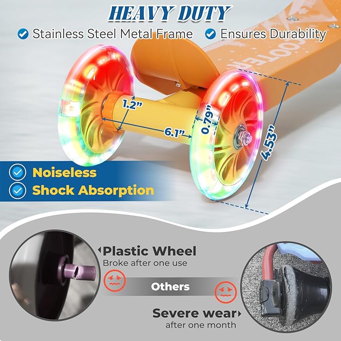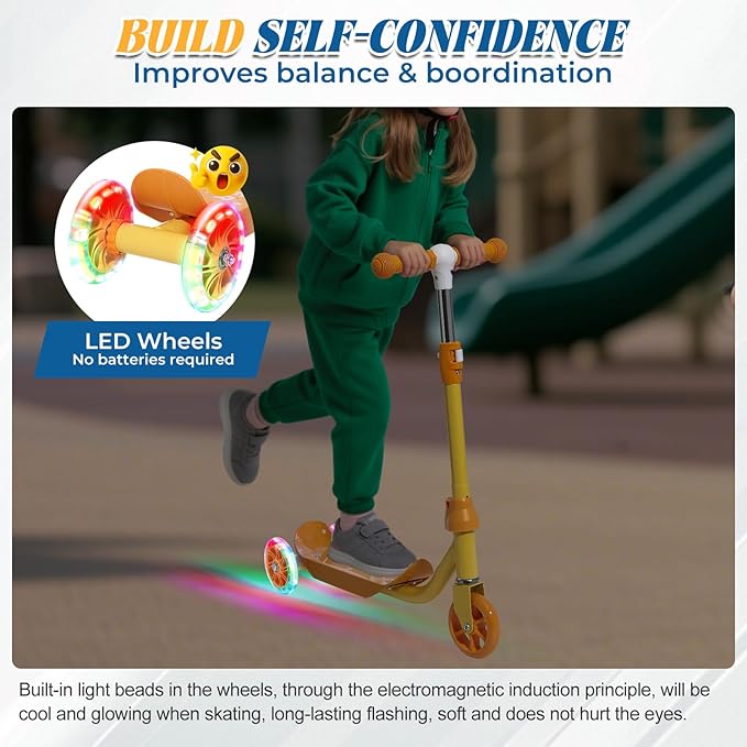 - ✅ FUN, BRIGHTLY FLASHING WHEELS - Adds instant excitement to every ride! The rear LED wheels light up with vibrant colors as the scooter moves, creating a fun light show that kids absolutely adore and making them visible at dusk.