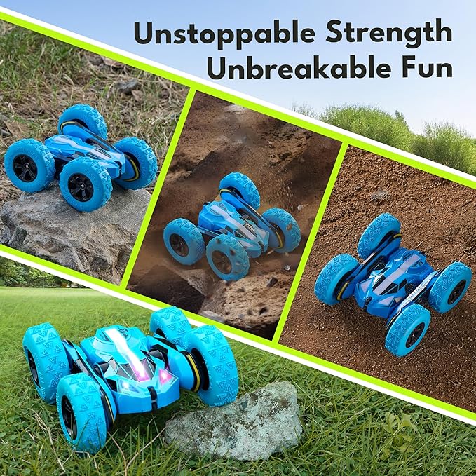 - Unleash Non-Stop Stunt Action, Anywhere! -- Get ready for instant adventure with this rugged RC stunt car! Engineered for kids who love excitement, it handles everything from living room floors to backyard trails with ease. Watch as they perform thrilling stunts, master challenging terrain, and build real-world skills—all while having a blast. With tool-free swappable batteries for extended play and mesmerizing color-changing lights, the fun never has to stop. Tough, responsive, and designed for endless action, it’s the perfect gift for active kids who love to explore and conquer.