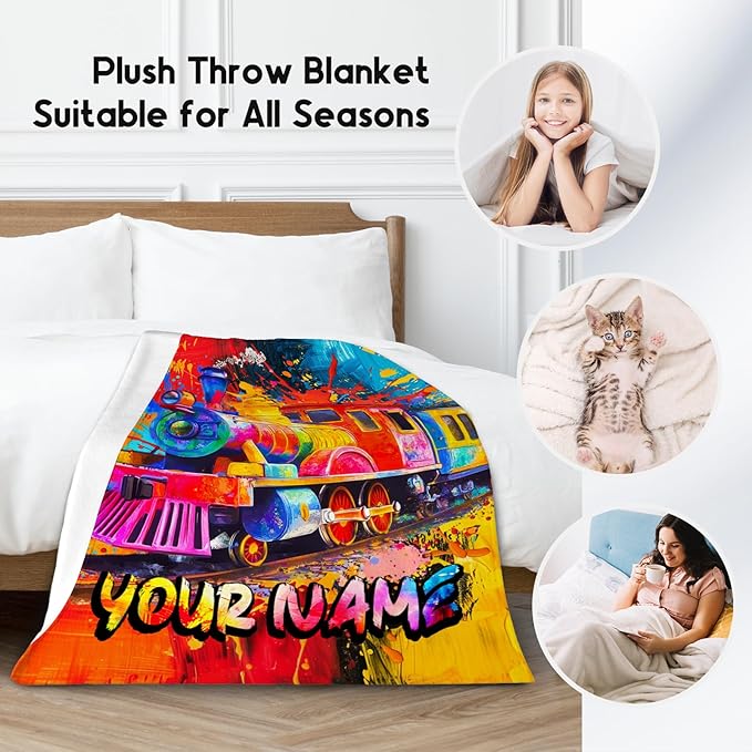 Boys Blanket - Train Blankets Gifts for Toddler Kids - Soft Flannel Throw for Room Decor Bed - 4 Sizes