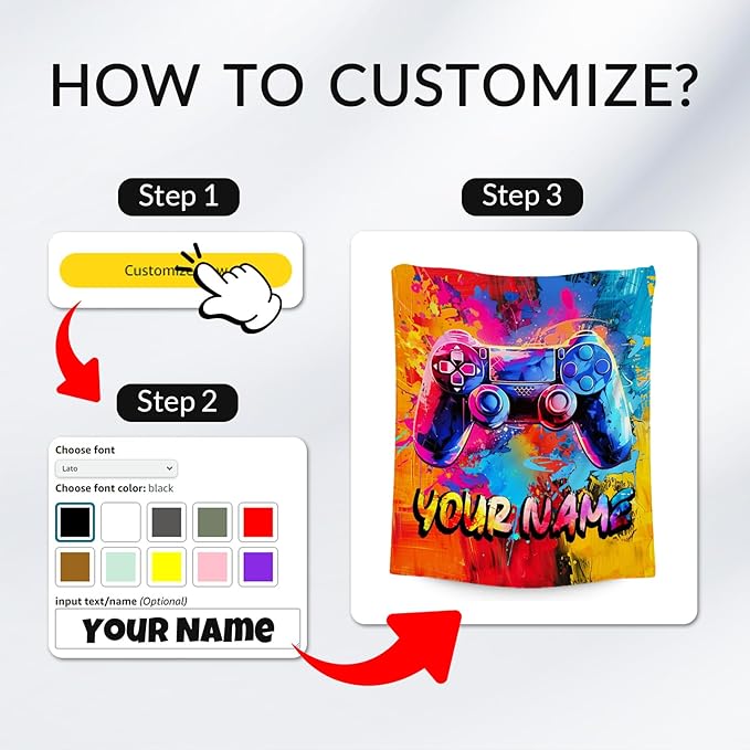 Personalized Gamer Blanket Boys Blankets Gifts for Teens/Men - Cool Soft Cozy Gaming Throw for Bed - 4 Sizes