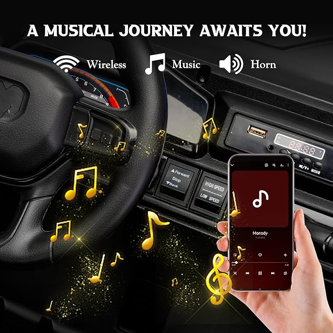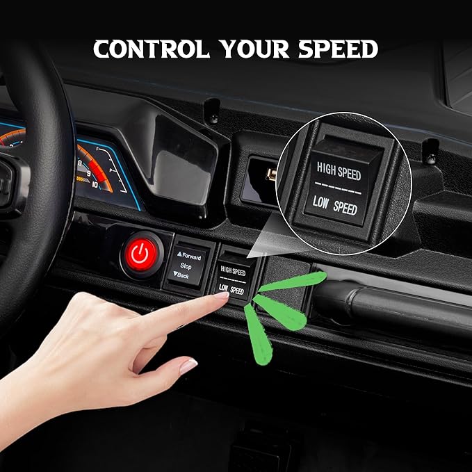 - 【Worry-Free Driving】Kids electric vehicles with four wear-resistant tires and a high chassis, this 24V ride-on car truck delivers a realistic off-road experience. Additional safety features like shock-absorbing springs, soft-start, and passenger handrails provide all-around protection for adventurous journeys.
