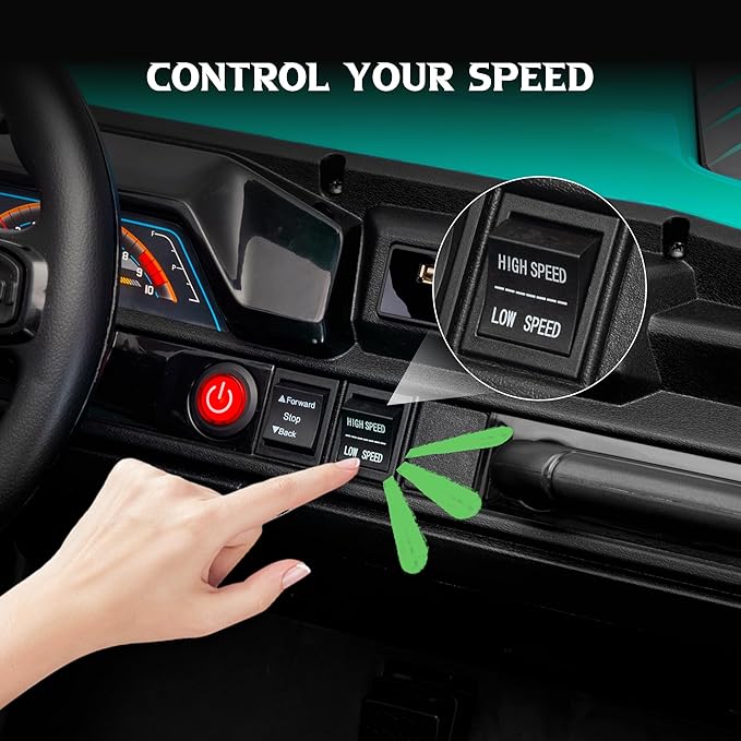 - 【Worry-Free Driving】Kids electric vehicles with four wear-resistant tires and a high chassis, this 24V ride-on car truck delivers a realistic off-road experience. Additional safety features like shock-absorbing springs, soft-start, and passenger handrails provide all-around protection for adventurous journeys.