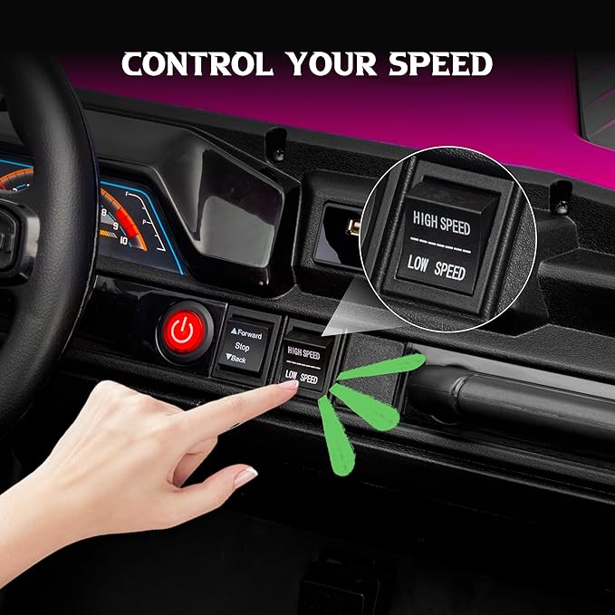 - 【Two Driving Modes】Remote mode offers three speeds (1.9-4 mph), allowing safe parental control for young children. Kids can also operate the vehicle independently using the foot pedal and steering wheel (with low/high speed settings), enjoying the thrill of self-driving adventures at their own pace.