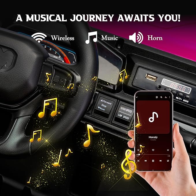 - 【Multifunctional Music Player】These dazzling lights also provide safety warnings during night rides. Beyond built-in music, parents can connect via Bluetooth to play their child's favorite songs or stories, making every trip a personalized musical adventure.