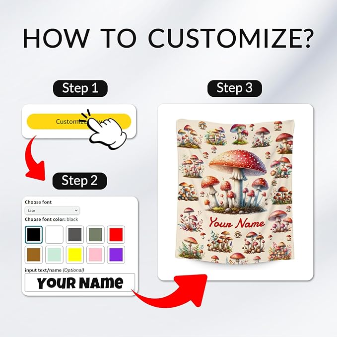 Kids Blankets Gifts Mushroom Blanket for Girls, Personalized Mushroom Gifts, 30"x40" Custom Cozy Fleece Throw for Girls Daughter