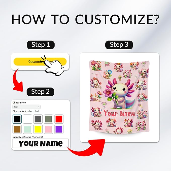 Girls Blankets Gifts Custom Axolotl Blanket for Toddlers Kids Granddaughter, 30"x40" Personalized Cute Flannel Throw Gifts for Sofa Couch