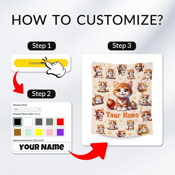 Girls Blankets Gifts Personalized Cat Blanket for Cat Lovers Women Adults, Custom Gifts with Name, 60"x80" Cute Flannel Kids Throw for Couch Sofa Bedroom