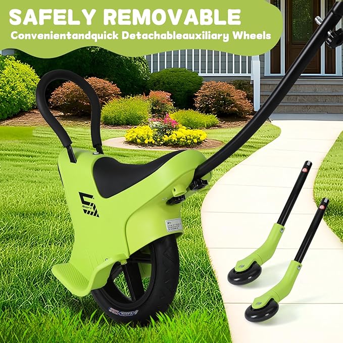 12in Hand Push Unicycle for Kids, Light Unicycle Bikes with Light/Handrails/Auxiliary Wheels, Parent-Child Unicycle Bike, Unicycle Balance Bikes, Kids Unicycle Bicycles (Green)
