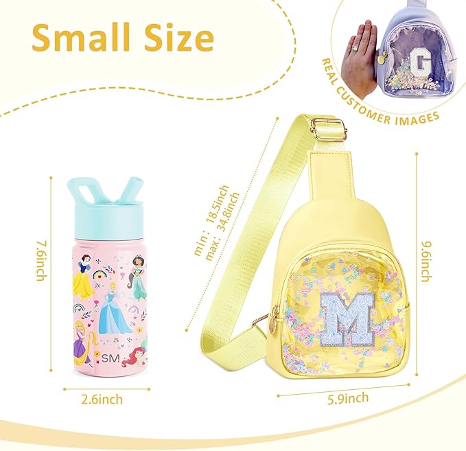 COSHAYSOO Personalized Christmas Birthday Gifts Burr Basket Stuffers for Girls Yellow Purse Sling Bag Crossbody Girl Cute Funny Cool Mini Travel Fashion Accessories Monogrammed Initial Letter M