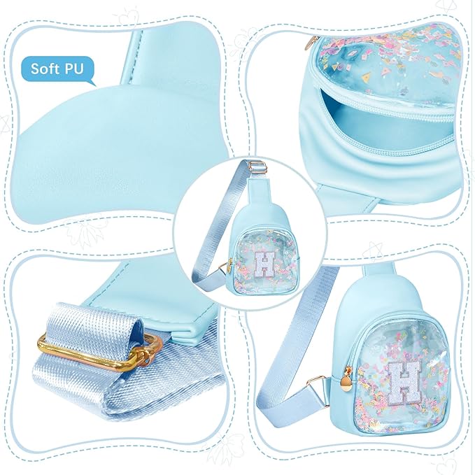 COSHAYSOO Personalized Christmas Birthday Gifts Burr Basket Stuffers for Girls Blue Purse Sling Bag Crossbody Girl Cute Funny Cool Mini Travel Fashion Accessories Monogrammed Initial Letter H