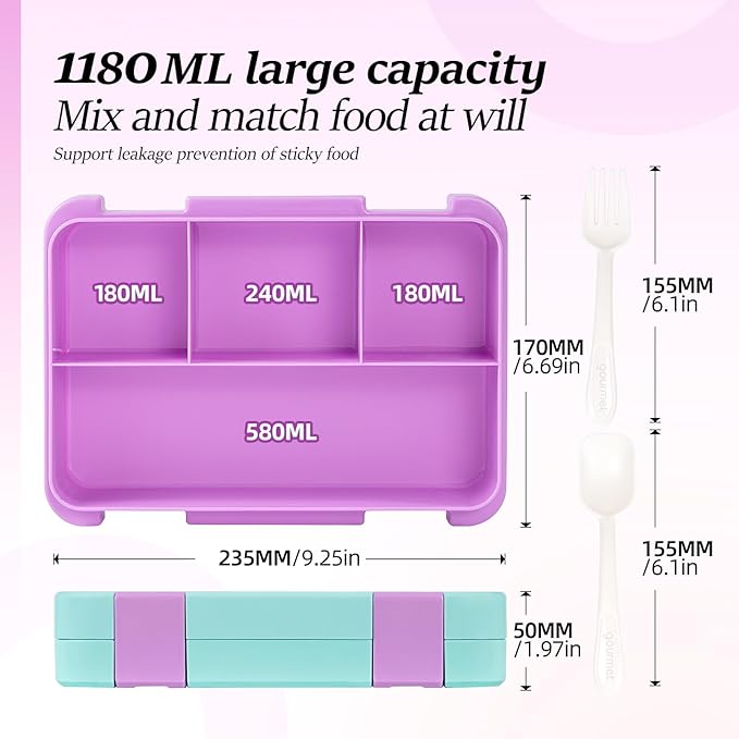 - 4-Compartment Design for Balanced Meals Keep your meals organized and flavors intact with four separate spacious compartments. This design is perfect for creating portion-controlled lunches with a diverse mix of flavors and textures, making it an ideal choice for both kids and adults.