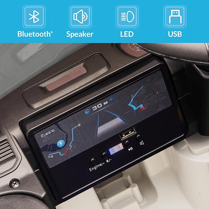 - [Officially Licensed RAM 3500 Design] This kids ride-on truck recreates the bold look and details of the legendary RAM 3500, featuring openable doors, realistic body lines, and cool LED headlights. Equipped with Bluetooth audio, horn, and engine start sounds, it delivers an immersive driving experience that makes every ride exciting and fun.