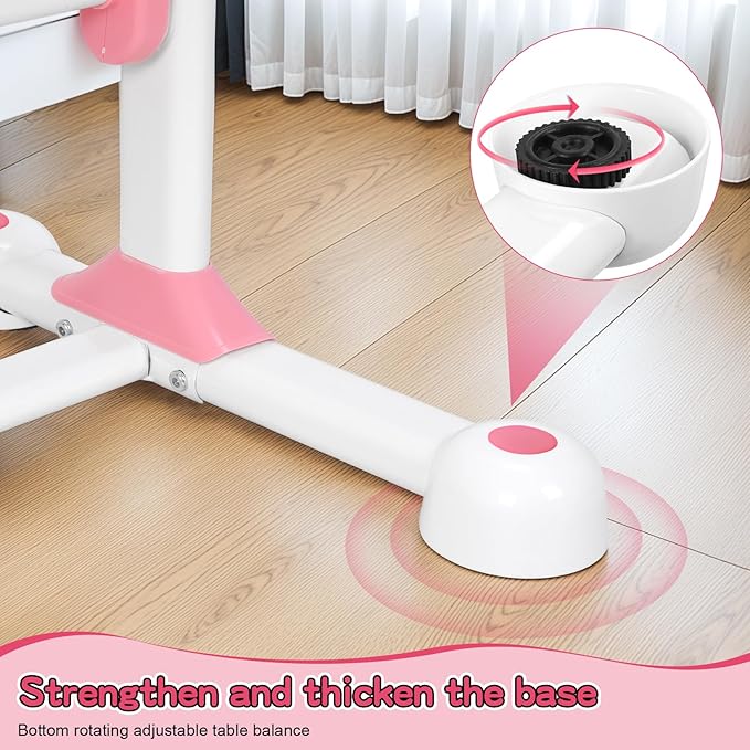 2025 Upgraded Kids Study Desk and Chair Set, 50 Degree Tiltable&Height Adjustable Kids Desk with Storage Drawers and Bookshelf (Pink-New 2)