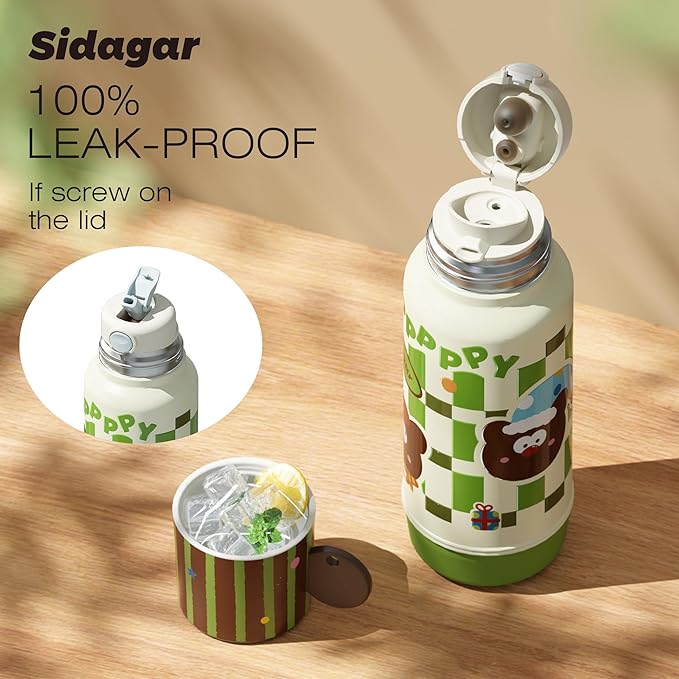 20 oz Cute Tumbler witn Lid and Straw, Insulated Stainless Steel Kids Water Bottle with Strap, Travel Leak Proof Coffee Cup, Bear