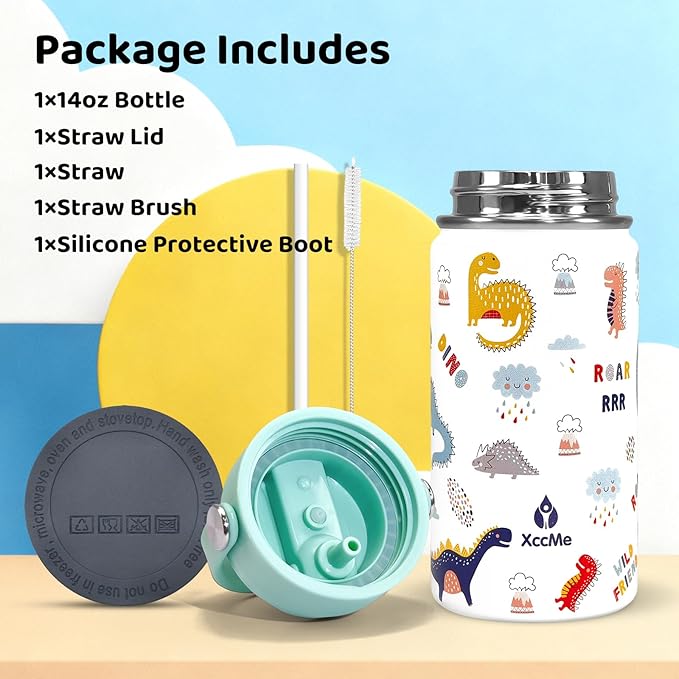 - 【Excellent gift choice】: To cater to children's preferences, we've printed dinosaurs, bows, letters, animals, and space-themed designs on these water bottle.Its beautiful appearance makes it an excellent gift choice. Perfect as a Christmas, back-to-school, Halloween, Thanksgiving, or birthday gift.