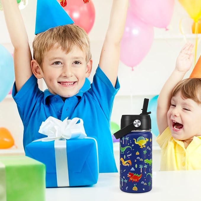 - 【Excellent gift choice】: To cater to children's preferences, we've printed dinosaurs, bows, letters, animals, and space-themed designs on these water bottle.Its beautiful appearance makes it an excellent gift choice. Perfect as a Christmas, back-to-school, Halloween, Thanksgiving, or birthday gift.