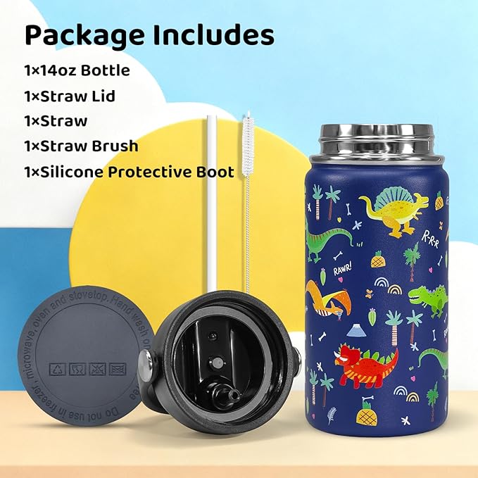 - 【Excellent gift choice】: To cater to children's preferences, we've printed dinosaurs, bows, letters, animals, and space-themed designs on these water bottle.Its beautiful appearance makes it an excellent gift choice. Perfect as a Christmas, back-to-school, Halloween, Thanksgiving, or birthday gift.