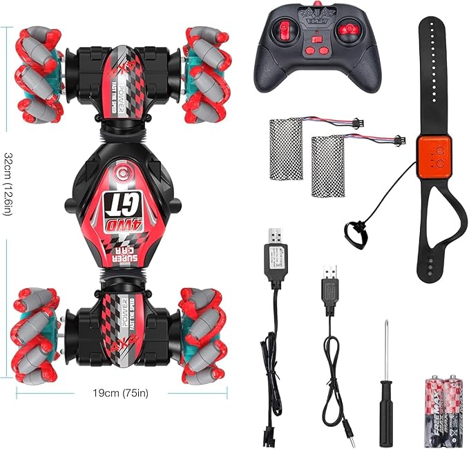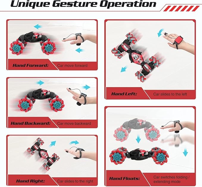- Hand & Remote Control: Want to command your toy car with cool gestures? This stunt RC car features dual control via traditional remote and smartwatch gestures, enabling precise movement and transformation through gesture recognition. It so cool!