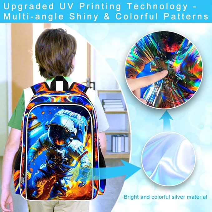 - 【Unique Backpack for Boys】This astronaut backpack upgrades the UV printing technology, perfectly combining fire and astronaut. Boys are sure to love using it to show their personality.