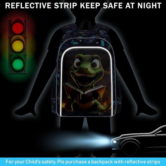 - 【Safety Dinosaur Backpack for School】Multi-point reflective strip design, environmentally friendly polyester material (through chemical materials and physical tests), giving your child absolute safety.