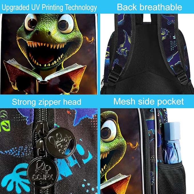 - 【Unique Backpack for Boys】This dinosaur backpack upgrades the UV printing technology, perfectly combining dinosaur and book. Boys are sure to love using it to show their personality.