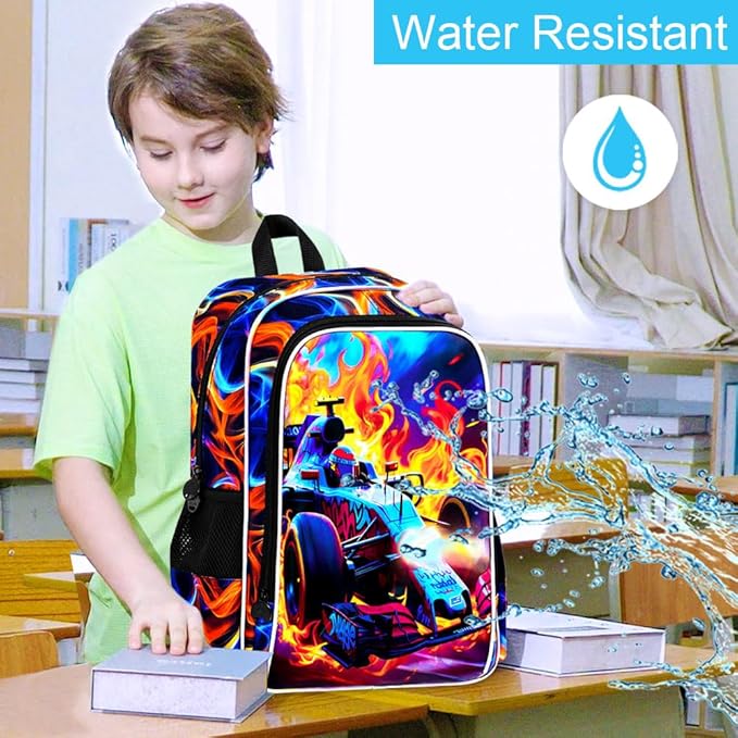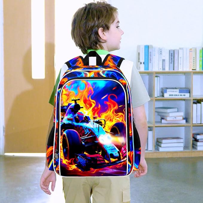 - 【Unique Backpack for Boys】This cars backpack upgrades the UV printing technology, perfectly combining fire and cars. Boys are sure to love using it to show their personality.