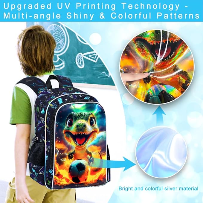 - 【Unique Backpack for Boys】This dinosaur backpack upgrades the UV printing technology, perfectly combining dinosaur and soccer. Boys are sure to love using it to show their personality.