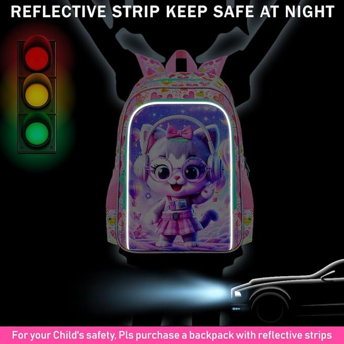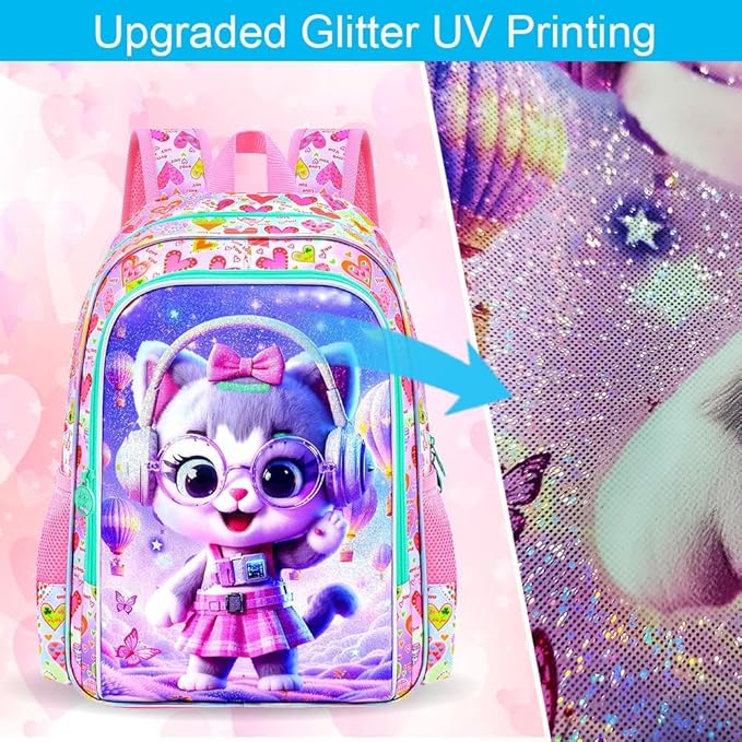 - 【Eye-catching Design】 The cat backpack for girls employs innovative UV printing technology. The cute pink cat presents a seven-color gradient effect under different lighting conditions, making every detail come alive.
